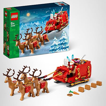 - Santa Claus is coming to town! Let their creativity take flight this holiday season with the LEGO® Santa's Sleigh building set for kids ages 9 and up. Budding elves will have lots of fun building the beautiful red and gold sleigh before discovering all the gift elements packed inside. The magic is brought to life by a Santa Claus minifigure, who can be seated proudly at the front of the sleigh with his naughty-or-nice list in hand. When playtime is over, the sleigh becomes a piece of Christmas decor that will spread joy in any room. A charming project to complete over the holiday season, this set makes a great Christmas gift for kids, as well as adults who love LEGO® sets. Warning: Choking hazard. Small parts. Not for children under 3 years Ages 9 and up Includes Santa and reindeer minifigures, Santa's sleigh and accessories 343 pieces included 10.3"H x 7.5"W x 2.4"D Plastic Imported