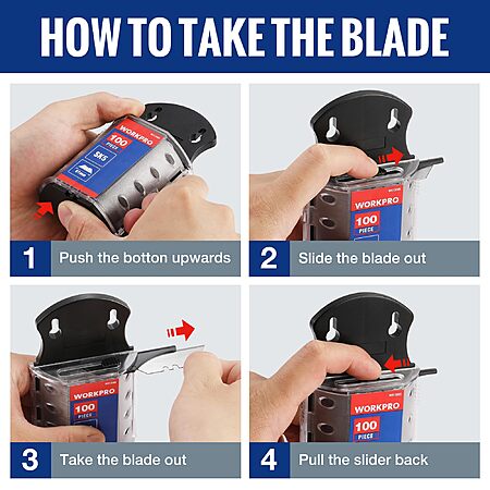 100-pk WORKPRO Utility Knife Blades w/ Dispenser (SK5 Steel)