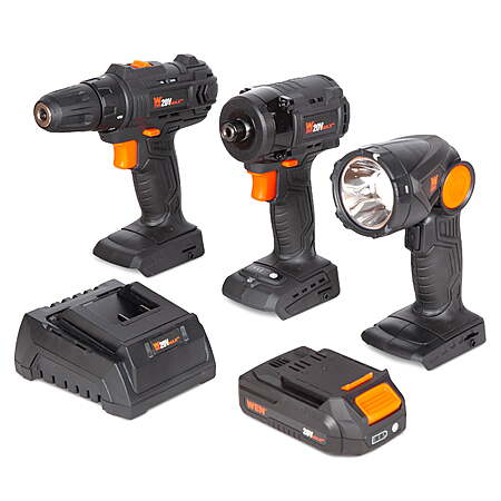 Remember when you weren't bound by cords? This WEN 20V Cordless Combo Kit comes with the WEN Cordless Drill / Driver, WEN Brushless Compact Impact Driver, and WEN Cordless LED Work Light. The WEN Drill / Driver features 15 clutch settings and two speed ranges for maximum control. Quickly drive screws, loosen nuts, and more with the WEN Brushless Compact Impact Driver, which delivers up to 1944 inch-pounds of torque. The WEN Cordless LED Work Light is lightweight, compact, and doubles as a flashlight, making any job easier. This 3-tool bundle comes with a 20V Max 2Ah battery and Charger, which can be used with all tools in the combo kit. And because it's a WEN product, your combo kit comes backed by a two-year warranty, a stocked inventory of replacement parts, and a friendly customer help line, all to make sure you remember WEN. WEN 20-volt 3 -Tool Brushless Power Tool Combo Kit ( 1 -Batteries Included and Charger Included ) | 20VK3DDL