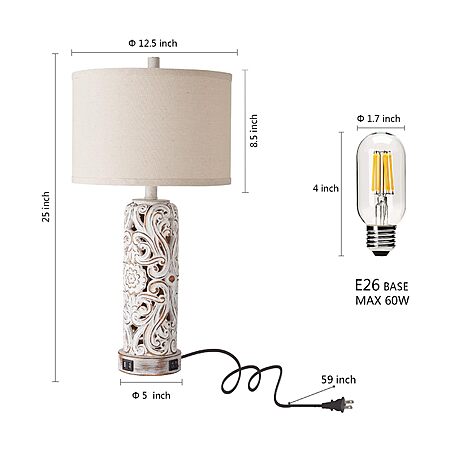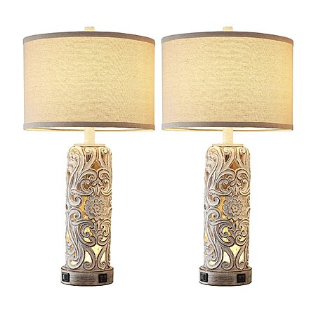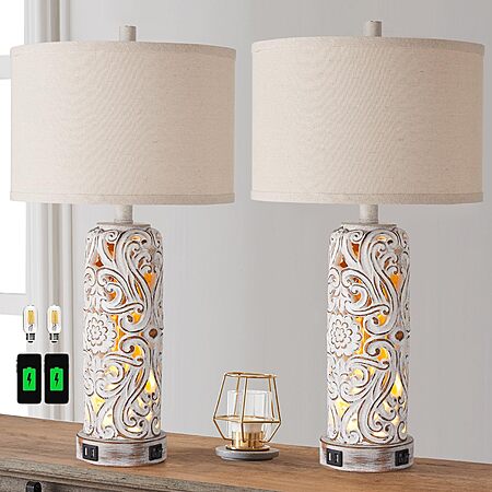 Set of 2 Rustic Farmhouse Table Lamps (Wash White or Dark Gray) - $49.99
