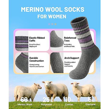 FANSHU via Amazon has 5-Pairs SIMIYA Women's Merino Wool Blend Crew Cushion Socks on sale for $9.99 - $2 off when you apply promo code UJTCAUVS at checkout = $7.99.Shipping is free w/ Prime or on $35+.