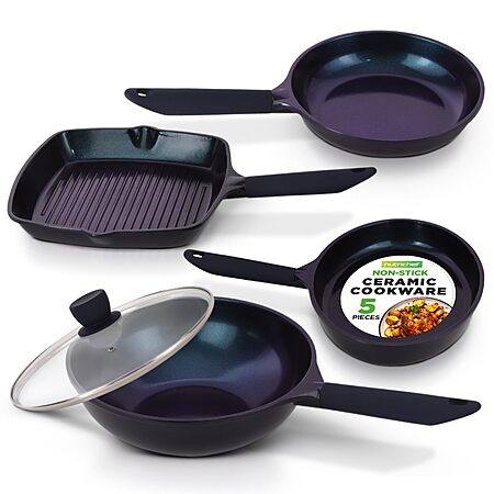 Model: NutriChef 5-Piece Frying Pan Cooking Set, Non-Stick Ceramic Pan Set with Grill Pan and Wok, Stain-Resistant Frying Pans With Cool-Touch Handles,...