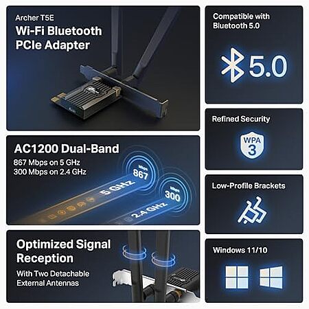 $19.99 | TP-Link AC1200 PCIe WiFi Card for Desktop PC (Archer T5E) at Amazon