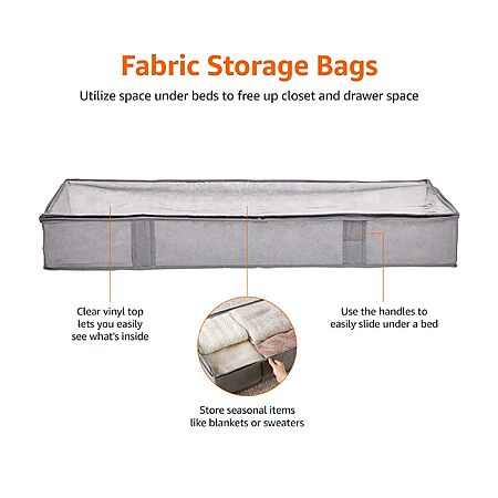 Model: Amazon Basics Under Bed Fabric Zipper Storage Container Bags with Window and Handles, 2-Pack, 18 x 42 x 6 Inches, Gray