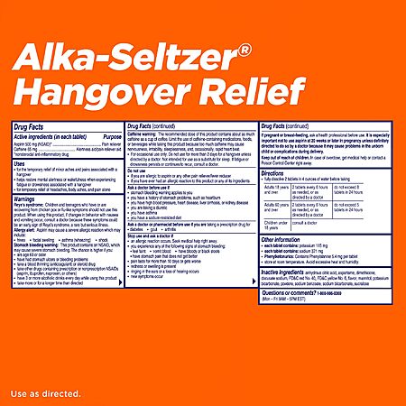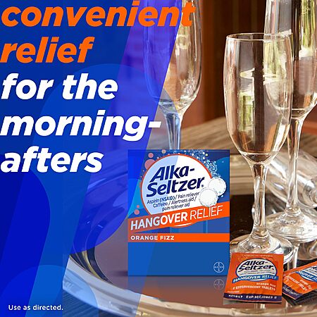 BYE-BYE HANGOVER: Whether you're tackling your fitness goals or spending time with your family, you'll need hangover and headache relief that actually works. Our Alka-Seltzer Hangover Relief tablets are formulated with aspirin and boosted by caffeine to help you feel like you again.