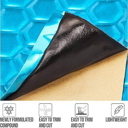 - Sound-proofing material (made of butyl rubber compound based substrate) helps reduce annoying vibrations and noises from the vehicle and road