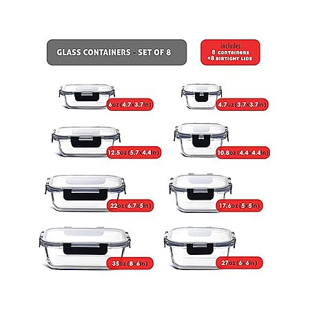8-Pack Eatex Borosilicate Glass Food Storage Containers w/ Airtight Snap Lock Lids $19.99 + Free Shipping w/ Prime