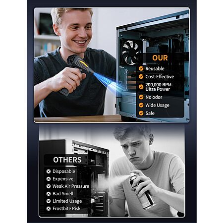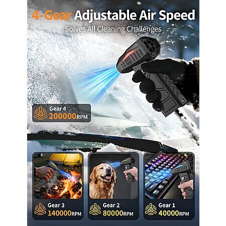 200000RPM 4-Gear Adjustable CordlessElectric Air Duster with Light - $18.99