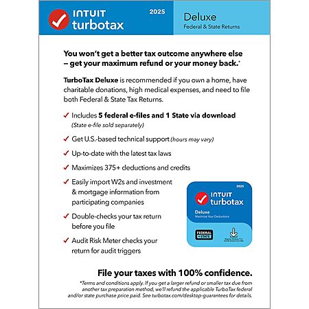 TurboTax Desktop Deluxe 2025, Federal & State Tax Return [PC/Mac Download] $55.99