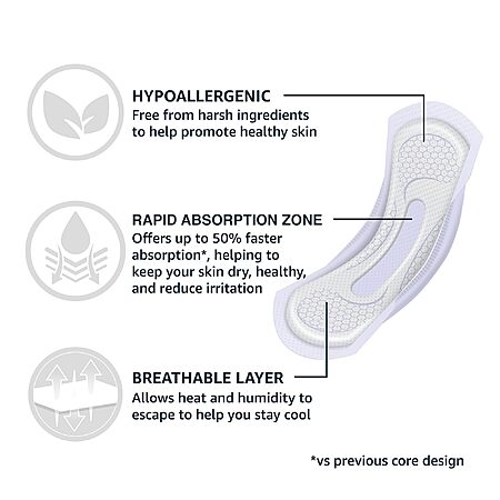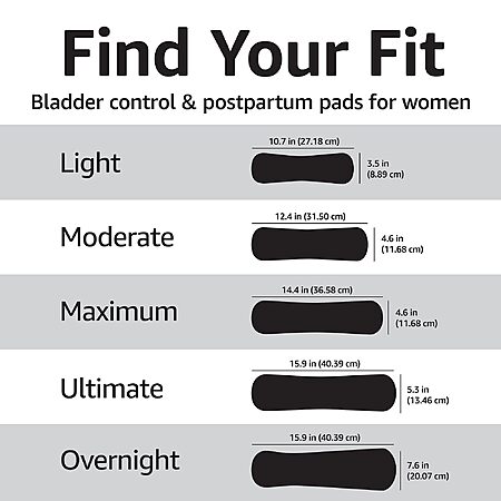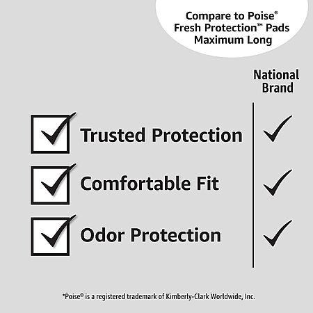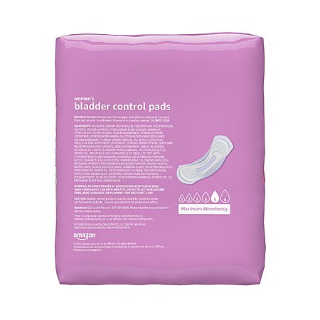 Model: Amazon Basics Incontinence Pads for Women Long, Bladder Control, Postpartum, Maximum Absorbency, Unscented, 78 Count (2 Packs of 39)