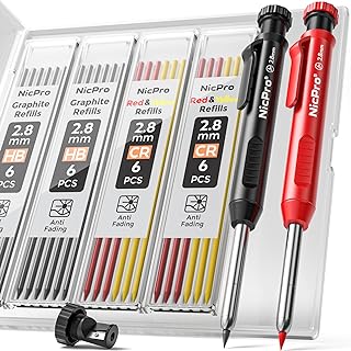Nicpro Carpenter Pencil with Sharpener with 26 Refills and Case $9