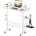 Model: COMHOMA Small Standing Desk Adjustable Height & Tiltable Tabletop, Mobile Stand Up Desk for Laptop, Portable Computer Table for Home Office Work and Walking Pad Treadmill, Height 30.7"-46.4", White