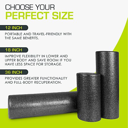 I recommend a 24" long foam roller because the longer length allows you to position it vertically behind your spine and stretch out the chest/shoulders, which we all hold in a cramped position from sitting at desks and using phones. 18" is a little too short for torso length