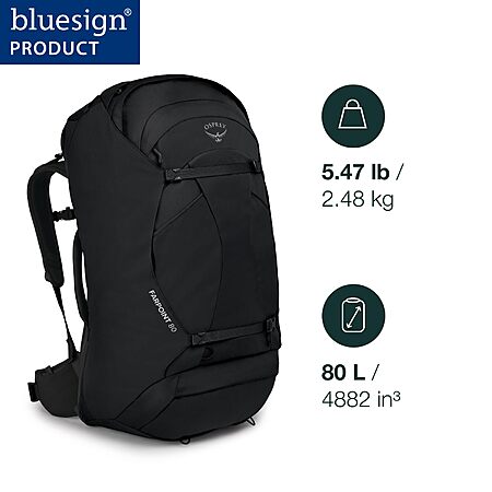 80L Osprey Men's Farpoint Travel Backpack (Black)
