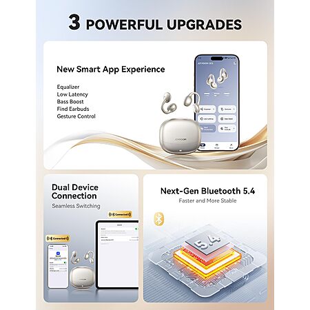 Model: JOYROOM OE3 Open Ear Earbuds, Wireless Clip On Earbuds Headphones, Auto L-R Recognition, Omni Tap Control, Immersive Sound, Ultra-Light 4.9g Fit, Comfortable for Workouts and Daily Use, (Silver White)