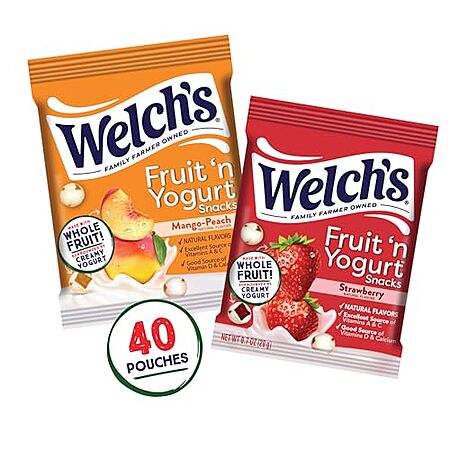$12.12 | 40-Pack 0.7-Oz Welch's Fruit Snacks, Fruit 'n Yogurt Variety Pack at Amazon (30.3¢ each)
