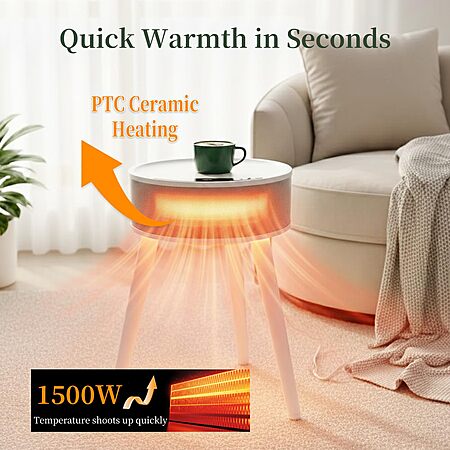 Space Heater, 1500W PTC Ceramic Side Table Heaters, White - $64.99