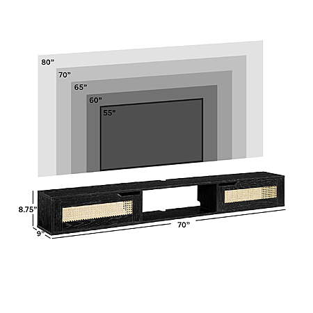 Walker Edison Modern Rattan-Door Floating TV stand for TVs up to 80”, Black or Coastal Oak - $39.99 at Walker Edison Official Store via Walmart