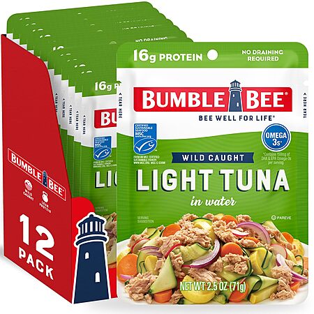 Bumble Bee Chunk Light Tuna in Water, 2.5 oz Pouches (Pack of 12) - Ready to Eat Wild Caught Skipjack Tuna - 16g Protein per Serving MSC Sustainable Seafood~$8.53 @ Amazon Resale