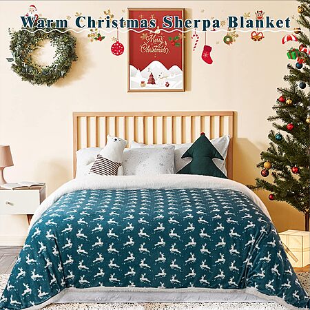 Lightning Deal: 90" x 65" LBRO2M Sherpa Fleece Bed Blanket (Green White Deer, Twin) $15.16 + Free Shipping w/ Prime or on $35+