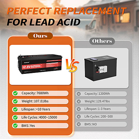 Lightweight Design – Only 111 lbs, about half the weight of equivalent lead-acid batteries.
