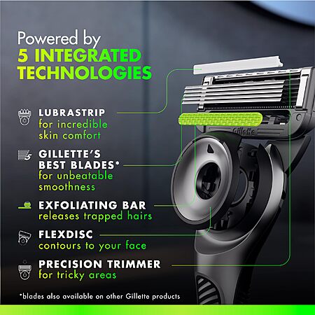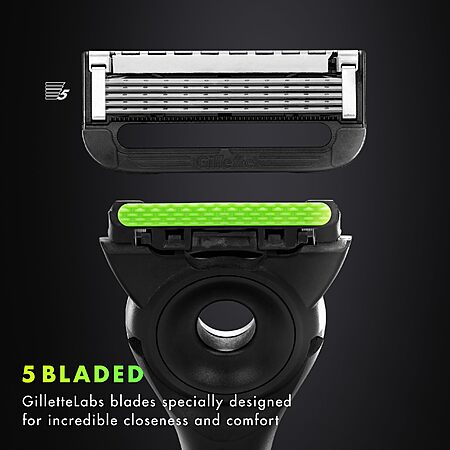 Model: Gillette Labs with Exfoliating Bar by Men's Razor Set, 1 Shower Hook, Handle, 2 Blade Refills, Silver and Black, Razors for Men, Mens