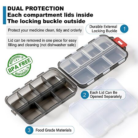 14 GRIDS Travel Pill Organizer Box with Labels - Travel Medicine Case Kit $5 for 1 or $7 for 3 fs with PRIME Color Choices
