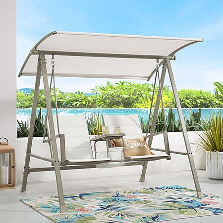 Walmart has Mainstays Outdoor 2-Seat Steel Porch Swing w/ Canopy (2 Styles) on sale from $104.98. Shipping is free.