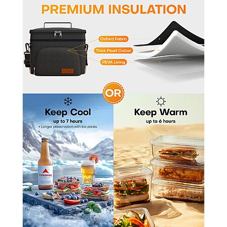 - EASY TO CARRY AROUND: The HOTOR insulated lunch bag provides 2 carrying options, offering a practical and convenient solution for on-the-go use. The adjustable padded shoulder strap provides comfort during commutes or trips, and the sturdy top handle makes the bag easy to grab and go. This versatile lunch bag is ideal for work, picnics, camping, and travel.