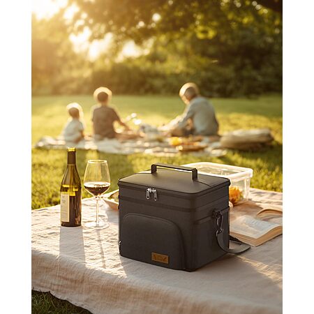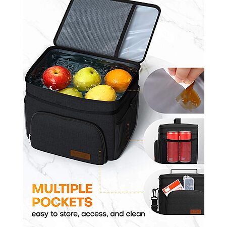HOTOR Insulated Lunch Box for Men & Women - Leak-Proof Cooler Lunch Bag with 4 Pockets, Adjustable Strap, Ideal for Work, Picnic, Travel - Medium, Black, 10.2"×6.9"×8.5" $7.98
