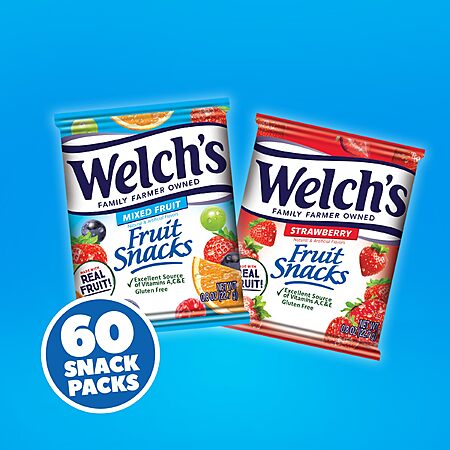 60 CT SNACK BOX - Contains 60Ct of 0.8oz Snack Packs of Welch's Fruit Snacks in a delicious combo of Mixed Fruit & Strawberry flavors