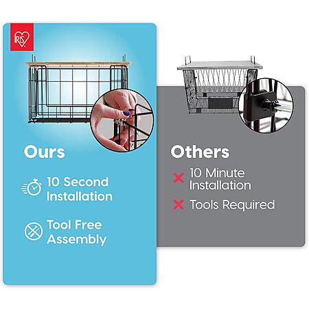 • EASY ASSEMBLY: No tools required—these IRIS USA wire baskets effortlessly snap together for a hassle-free setup, so you can start organizing your pantry space in seconds.