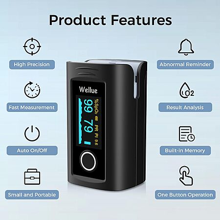 Model: Wellue Fingertip Pulse Oximeter PC-60F, Blood Oxygen Saturation Monitor with Batteries, Carry Bag & Lanyard for Wellness Use