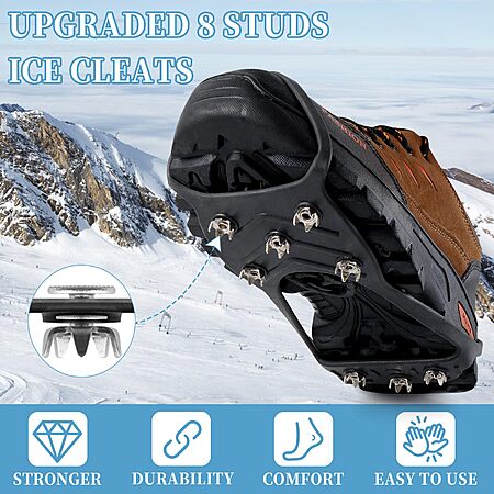 - 【2 Pair Crampon 8 Steel Studs Design 】 These universal non-slip claw nails have strong steel nails. Perfect non-slip design for excellent traction on snow and ice. Offering effective protection even at low temperatures, you walk quickly and steadily on snow and ice.