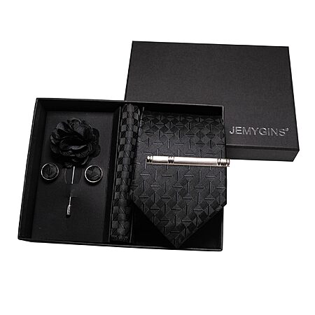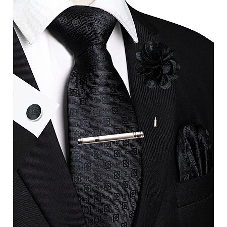 JEMYGINS Mens Black Tie Woven Necktie and Pocket Square Cufflinks with Lapel Pin Tie Clip Sets (various) - from $2.62