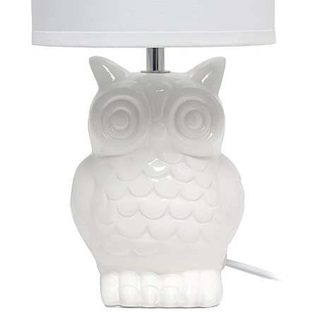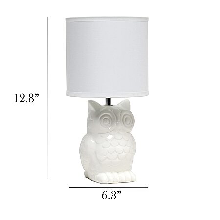 Simple Designs LT1136-OFF 12.8" Tall Contemporary Ceramic Owl Bedside Table Desk Lamp Off White $10.77