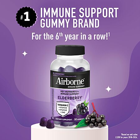 50-Count Airborne Elderberry + Zinc & Vitamin C & D Gummies $5.97 w/ S&S + Free Shipping w/ Prime or on $35+