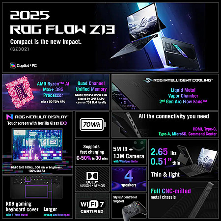 ASUS ROG Flow Z13: 13.4" 2.5K 180Hz Touch, Ryzen AI Max+ 395, 64GB LPDDR5, 1TB SSD $1949.99