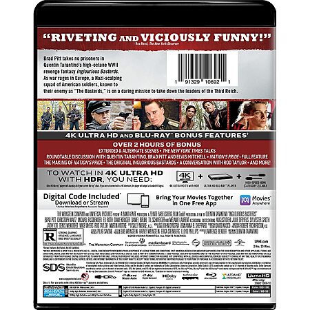 Inglourious Basterds - 4K Ultra HD + Blu-ray + Digital $12.99 Free Shipping Amazon Prime