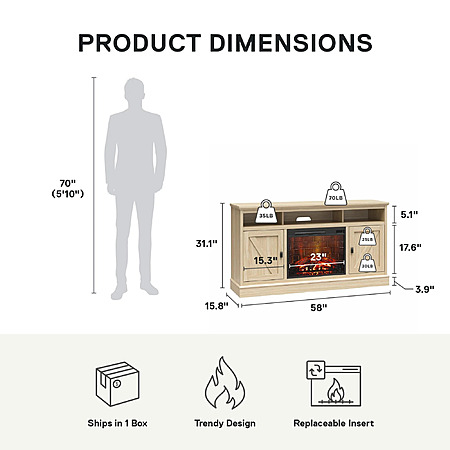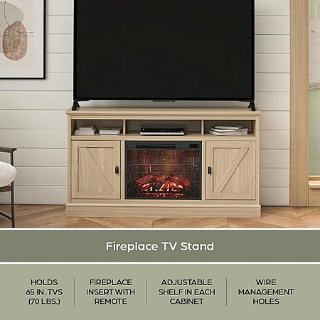 Ameriwood Home Ashton Lane Fireplace TV Stand, Spring Pine $84.15