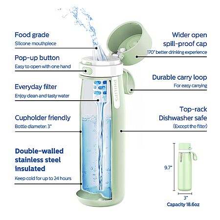 18.6-Ounce Philips GoZero Everyday Insulated Stainless Steel Water Bottle w/ Filter (Green) $15.99 + Free Shipping w/ Prime or on $35+