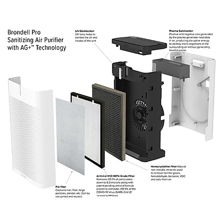 Brondell Pro Sanitizing Virus Eliminating Air Purifier 3 -Speed White HEPA Air Purifier $120