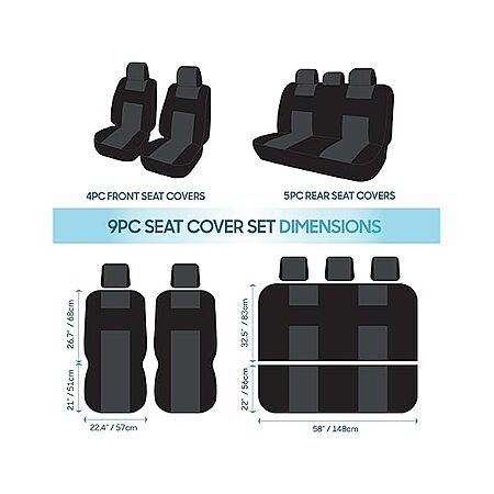 - Package kit Includes: 2 front low back seat covers, split rear bench cover (top & bottom) & 5 headrest covers