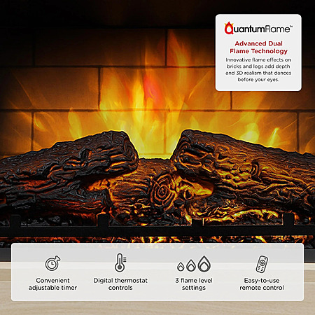 - Heating Capability: 23" wide insert heats up to 400 square feet with QuantumFlame technology.
