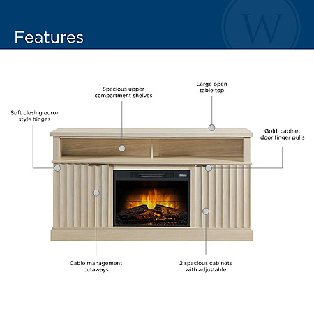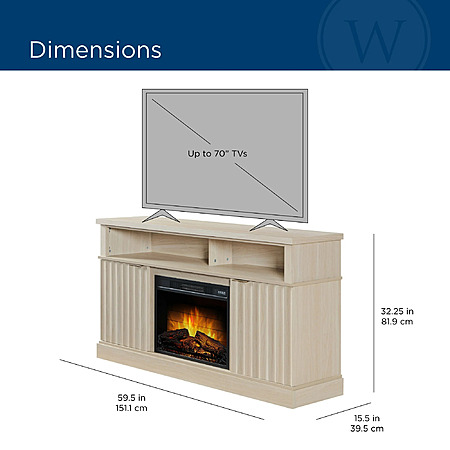 Whalen Furniture Harris Fluted Media Fireplace Console for TVs up to 70", Pine Finish