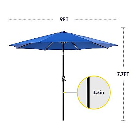 • Multi Application: 9 Feet diameter large umbrella shade better for market, garden, deck, backyard, pool and patio table. Wide enough to your 42" to 54" round, square or rectangle table with 4 to 6 chairs.