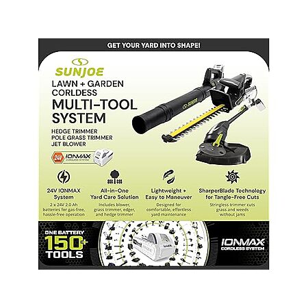 Sun Joe 24V IONMAX Cordless Leaf Blower + Grass and Hedge Trimmer Outdoor Garden Combo Power Tool Kit w/ 2 Batteries and Charger $99.99 + Free Shipping w/ Prime