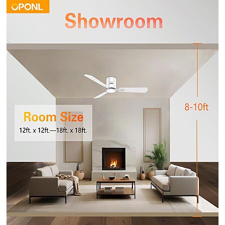 White Ceiling Fan with Light 52inch, Low Profile, Remote Control, Flush Mount, Noiseless, Reversible, 6CCT, Dimmable, 6 speeds $39.99