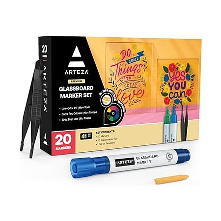 20-Pack Arteza Glassboard Glass and Whiteboard Dry Erase Markers + 20 Replacement Tips Set $7.69 + Free Shipping w/ Prime