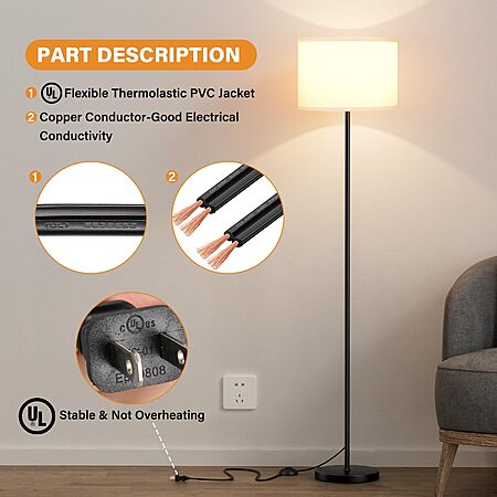 - Modern White Floor Lamp: Simple, elegant design suits any room or décor style